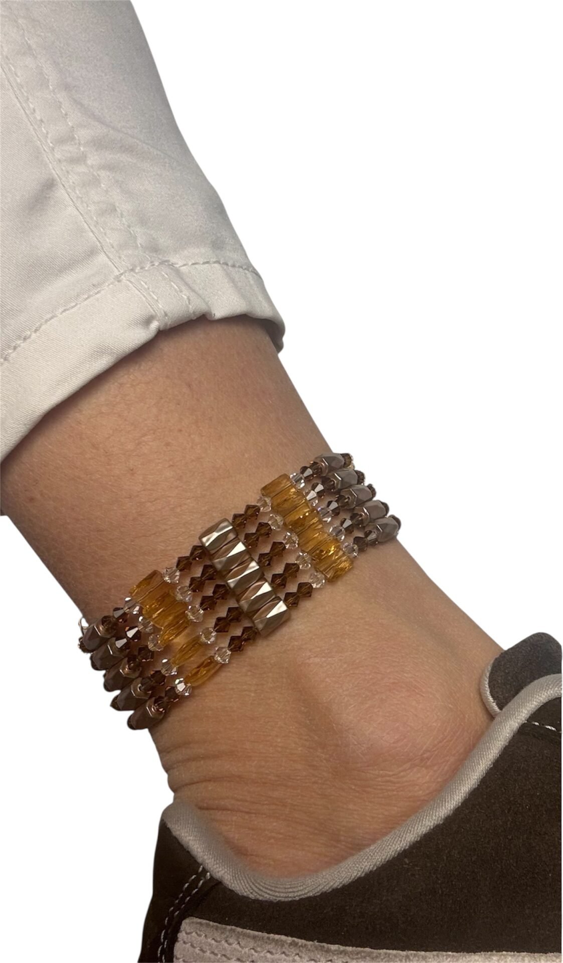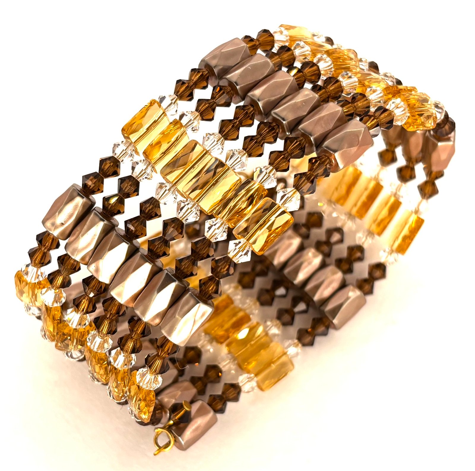 Silis è un gioiello magnetico beige e marrone con cristalli Preciosa®. Naturale, elegante e artigianale.